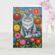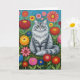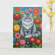 Deseje a alguém um dia maravilhoso com este cartão fofo com um gato riscado de cinzas fofinhas em flores de arte folclórica vermelha, rosa, amarela, laranja e azul.