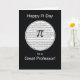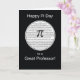 Deseje ao seu professor um Feliz Dia de Pi com este cartão irracional. Um círculo branco com o símbolo Pi e os números estão sobre um fundo preto.