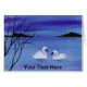 Uma pintura aquosa de dois adoráveis cisnes no crepúsculo da noite.