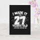Este desenho engraçado de aniversário de 27 anos faz um ótimo presente de humor sarcástico ou piada para um tema de aniversário de 27 anos ou festa surpresa de 27 anos! Apresenta o meme engraçado de aniversário de 27 anos "Eu consegui chegar aos 27 anos... Nada me assusta" que vai fazer muita gente rir, incluindo familiares, amigos, convidados da festa e o aniversariante ou aniversariante também!