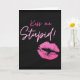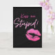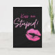 Cartão Citação negra e rosa com beijo - Beije-me, estúpid