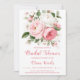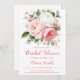 Comemore a noiva a ser com um cartão de chá de panela romântico com peônias cor-de-rosa pinceladas, rosas brancas e verde-luxuoso, projetado no estilo floral do eterno.