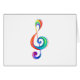 Chave musical desenhada a partir de camadas multicoloridas de cores do arco-íris sobre fundo branco.