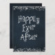 Convites de Casamento ou Aniversário Felizes para Sempre. Personalize o verso deste lindo cartão em estilo vintage com um fundo de quadro-negro com bordas de luz bokeh etérea e tipografia que diz 'felizes para sempre'. Perfeito para casamentos e festas de aniversário de casamento.