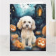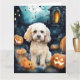 Cartão Cockapoo de Halloween com Abóboras Assustadoras