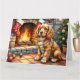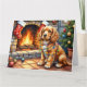 Cartão Cocker Spaniel by Fireplace with Christmas Lights