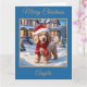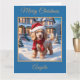 Um adorável cachorrinho de Cocker Spaniel está brincando alegremente na neve nesta encantadora cena de Natal. Adicione seu próprio texto personalizado.