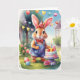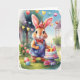Cartão Coelhinho bonito, comemorando ao ar livre no jardi