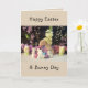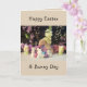 Este cartão de Páscoa adiciona um toque de sabedoria e humor à velha questão: O que o Coelhinho da Páscoa faz quando não é Páscoa? Embora a resposta permaneça um mistério, não podemos deixar de imaginar que o Bunny seja apoiado por uma equipe de pequenos ajudantes, assegurando que tudo corra suavemente durante todo o ano.