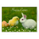 Cartão Coelhinho de Páscoa bonito e Pintinho com Flores