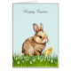 Bonito coelho de Páscoa com pintinho e flores Cartão de Férias Feliz. O texto pode ser personalizado para Páscoa ou Aniversário. Os coelhos simbolizam longevidade, abundância e boa fortuna.