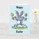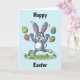 Traga um sorriso para o rosto de alguém com esta adorável carta de Páscoa com um belo coelho lúgubre fazendo malabarismo com ovos coloridos de comedor. Perfeito para espalhar alegria e alegria com este cartão de Páscoa de Ovos.