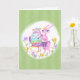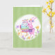 Uma decoração de coelho rosa e feliz da Páscoa é um ovo de Páscoa usando uma variedade de blues de bebê, lavandas e cores verdes de grama de limão. Ilustração original de Noël Snow
