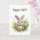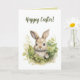 Este belo cartão apresenta uma ilustração de um coelho escondido entre folhas. Na frente e no interior há mensagens editáveis que você pode alterar com seus próprios cumprimentos. Você também pode alterar o tamanho da fonte, o estilo e a cor. As cores no interior e no verso também podem ser alteradas. Você pode usar isso como um cartão de aniversário ou como um cartão para qualquer ocasião, incluindo a Páscoa.