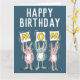 Cartão de aniversário de design de coelho para a mãe. Cartão de aniversário divertido com ilustração de coelhos cor-de-rosa e azul. Os coelhos estão segurando cartas para soletrar a palavra mãe.