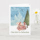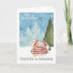 Coelhos de Natal Beijando em Suéter de Inverno em um fundo de cena de neve com árvore de Natal - cartão de felicitações da Ricaso - fácil adicionar seu próprio texto