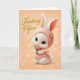 Este cartão delicado “Pensando em Você” apresenta um adorável coelhozinho vestido com um gorro e vestido de malha rosa macio, segurando um buquêzinho de flores. Tons quentes de pêssego e detalhes suaves criam um design confortante e sincero, perfeito para levantar o ânimo de alguém, oferecer apoio ou simplesmente fazer saber que esteve em seus pensamentos. Um acréscimo terno e encantador a qualquer coleção de cartões carinhosos.
