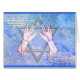O design original bonito, digno neste cartão sobre-feito sob medida para os feriados altos incorpora uma estrela de David subtly telhada coberta com lilac cor-de-rosa o "Cohanim protegido entrega" que parece ser gravado em uma parede bonita da rocha matizada com os azuis da paleta de Monet. Na parte dianteira, no inglês & no hebraico é uma das bênçãos sacerdotais para Rosh Hashanah. O interior do texto é a transliteração de cartões de natal tradicionais que você pode se manter, mudar, ou claro.