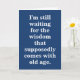 Uma citação de aniversário humorística em azul para a velhice. A cor de fundo pode ser alterada. O texto frontal só pode ser editado