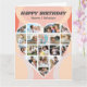 Diga Feliz Aniversário com uma colagem de fotos cardíacas, cartão de aniversário personalizado com abstrato groovy e tipografia retrógrada. O modelo de foto está configurado para que você adicione suas fotos, trabalhando em linhas de cima para baixo. A colagem de fotos contém 18 fotos que são exibidas em uma mistura de retratos, paisagens e formatos quadrado/instagrama. Feliz Aniversário, o nome ou a relação e o texto dentro são todos totalmente editáveis para que você possa personalizar para qualquer uma e qualquer ocasião. Um cartão de guarnição adorável que pode enquadrar ou colocar numa caixa de memória para tesourar para sempre.