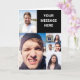 Não importa a ocasião, faça dela uma memorável com um cartão de saudação personalizado com seu rosto e sua própria mensagem. Este cartão tem uma colagem de fotos para até quatro fotos na frente, além de uma foto adicional no interior e mais uma no verso. A mensagem na frente está pronta para o seu texto personalizado, assim como a saudação no interior. Então, você pode criar seu próprio cartão de aniversário engraçado ou um cartão especial para qualquer ocasião.