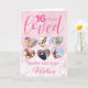 Um cartão de aniversário de 16 anos de colagem de fotos personalizada fabulosa. Este design cintilante cor-de-rosa é adequado para qualquer idade. Preencha os 6 corações com fotos da pessoa de aniversário ou com fotos de todos que as amam. Um design glamouroso que eles certamente amarão.