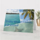 Colagem de fotos com três fotos típicas de Caribe, com palmeira, estrelas e praia. Um cartão de boas-vindas desejando um espanhol " Feliz cumpleaños, hermana!" para sua irmã, você pode mudar o texto, a fonte e a cor para seu gosto.