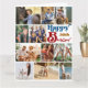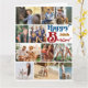 Cartão de aniversário grande personalizado que contém até 12 fotos diferentes e você também pode incluir um dentro de mensagem personalizado O modelo de foto está pronto para que você adicione suas fotos trabalhando da esquerda para a direita em linhas de cima para baixo, que são exibidas em paisagens horizontais, retratos verticais e formatos quadrados. Finalmente, você pode adicionar um dentro de imagem maior, que é exibido no formato retrato. As cores de fundo e de tipografia são editáveis - clique em "personalizar mais" para editar usando a ferramenta design. Personalize a frente deste grande cartão de aniversário com qualquer idade para sua mãe, pai, filho, filha, irmão, irmã, amiga, colega de trabalho...