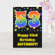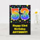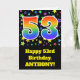 The front of this exciting, fun, and vibrant birthday greeting card design features a colorful star field inspired pattern, along with the number "53" having a multicolored rainbow spectrum like gradient pattern, on a black colored background. The front also features a birthday greeting message, including a customizable recipient name. The inside features a custom birthday greeting message, or could perhaps be cleared and left blank if a message is to be written by hand instead. A personalized birthday card like this might be a fun way to send birthday wishes to somebody who is celebrating their fifty third birthday. [~Z0000348]