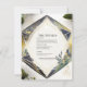 Apresentamos nosso requintado "Cartão com Detalhes de Flores Pequenas e Geométricos Modernos", uma combinação perfeita de elegantes botões de flores delicadas, folhas verdes, uma moldura geométrica em verde, dourado e amarelo, e um fundo cremoso. Com um toque de charme da tipografia elegante, este cartão certamente irá cativar seus convidados e deixar uma impressão duradoura.