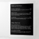 Seu nome ou nome comercial é elegantemente estirado dentro de uma coroa circular de flores em um arranjo moderno neste folheto personalizado de três vezes. Um tratamento criativo de design para salões de beleza, salões de unhas, maquiadores, cabeleireiros, planejadores de eventos, produtos de cuidados de pele e muito mais. Atualize o texto personalizável para ajustado de sua marca e personalize os detalhes em todo o folheto para seu próprio uso. Estas brochuras 5x7 são perfeitas para exibir suas listas de preços e menu de serviços ou descrever sua linha de produtos. Um marketing de excelente a ser entregue a clientes potenciais para apresentar sua empresa rapidamente. Entre em contato com o designer para obter ajuda com variações especiais de configuração ou de layout. Arte e design © 1201AM Design Studio | www.1201am.com
