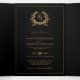 A peça central desta design de casamento romântica é o clássico monograma tradicional. Apresenta as iniciais do casal rodeadas por uma crista de botânicos e galhos folhosos, juntamente com uma foto do casal que pode adicionar elegância e beleza ao cartão - tudo em cores pretas e douradas. Personalize facilmente seus detalhes de evento e RSVP através do código QR que envia seus convidados diretamente para seu site.