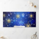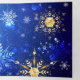 Cartão Com Dobra Tripla Fundo Azul XMAS com Flocos de Neve Ouro
