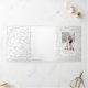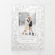 Elegante, chic e design monocromático mínimo com modelo de foto de solteiro, padrão botânico de inverno esculpido prateado e campos de texto editáveis. Os painéis apresentam modelos adicionais de texto e foto.