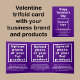 Feliz dia do Namorados! Um feriado adorável para comemorar este fevereiro e anunciar também seu negócio ou promover seu nome de marca. Cartão triplo personalizável roxo com saudação de Namorados, nome comercial, produtos ou serviços e outras informações da sua empresa. Cartão triplo como brochura para a sua empresa. Você pode colocar até três produtos ou serviços. Personalize-o e dê-o aos seus clientes ou clientes para cumprimentá-los neste feriado de Namorados e como material de marketing para anunciar a sua empresa e promover os seus produtos ou serviços. Para personalizar esta placa tripartida, carregue o logotipo da sua empresa e as imagens dos seus produtos ou serviços. Digite também seu nome de empresa, endereço, número de telefone, e-mail, site ou página de mídia social de sua empresa e uma breve descrição atraente de seus produtos ou serviços. Verifique a aparência em todos os lados depois de carregar imagens e digitar textos. Se a aparência lhe agrada, você pode colocar seu pedido agora. Se você precisar redimensionar e mover as imagens e os textos para o ajustado nesta placa tripartida, troque a ferramenta design. Você também pode alterar a cor do plano de fundo, a cor da fonte e o estilo da fonte na ferramenta design. Anuncie sua empresa. Promova o nome da sua marca. Cartão triplo personalizável que você pode usar para criar reconhecimento de nome de marca. Feliz dia do Namorados! Desejo mais vendas para você neste feriado.