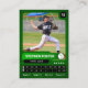 Este cartão verde de baseball é perfeito para qualquer fã de baseball! Ele apresenta um design verde ousado com um beisebol branco, que certamente se destaca. Personalize-o com a sua foto e estatísticas favoritas do jogador de beisebol. Este cartão seria um presente de excelente para qualquer entusiasta do beisebol.