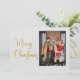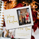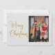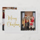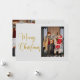 Envie cartões de natal sofisticados com este elegante guião dourado cartão com fotos da família Feliz Natal. Com dois espaços de fotos enquadrados em um fundo branco texturizado, o design mostra "Feliz Natal" e "Ano Novo" em letra de na moda dourado. Personalizado com seu nome familiar, este cartão plano é uma escolha eterno para compartilhar seus desejos mais quentes com entes queridos durante o período de férias.
