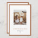 Celebre a temporada de gratidão com o elegantemente projetado cartão com fotos de Ação de Graças. Apresentando uma elegante borda de bronze moderna que enquadra um espaço branco intocado, esta carta mostra lindamente a sua querida fotografia. A saudação de frente, "Feliz Ação de Graças", acrescenta um toque quente, perfeito para compartilhar seu espírito festivo com os entes queridos. Vire a placa para encontrar um espaço para uma foto adicional e um lugar especial para escrever uma mensagem sincera. Este design sofisticado oferece uma combinação perfeita de estilo contemporâneo e sentimentos pessoais, fazer que seja uma lembrança memorável para amigos e familiares.