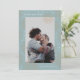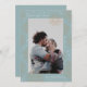 Este cartão com fotos apresenta uma borda de fogos de artifício dourados e estrelas brancas cintilantes sobre um fundo azul minúsculo turquesa. A parte traseira tem uma foto e um espaço adicionais para uma mensagem mais longa.
