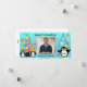 Você pode facilmente adicionar uma foto da família, uma foto do seu filho, ou até mesmo do seu cachorro facilmente ao nosso cartão com fotos de Cartões de natal Coloridos! Vários pinguins bonitinhos, flocos de neve coloridos, e árvores caprichosas em um fundo azul teal fazem desse cartão de feriado alegre e divertido um favorito!