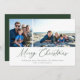 Espetacular moderno minimalista, escrita de caligrafia verde "Feliz Natal" com apoio verde sólido, 2 fotos de cartão de Natal.