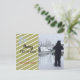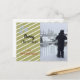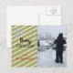 Um design brilhante com fundo de ouro com faixas diagonais brancas e três pequenos flocos de neve no canto. Adicione a sua imagem e personalize conforme desejar. Você pode adicionar uma mensagem na parte traseira do cartão postal, se quiser.