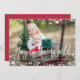 Cartão com fotos de feriado simples e chic apresenta sua foto favorita da família sobreposta com uma borda branca de floco de neve que evoca a aparência de uma janela gelada e fosco. "Joy to the World" aparece na parte inferior da letra moderna do roteiro branco. Personalize com seu nome de família e o ano aninhado na design. Cartões que se revertem a um padrão de vinha sutil em vermelho de amora festiva.