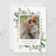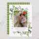 Este Natal de texto personalizado | cartão com fotos de férias pintado de aquarela eucalipto, folhas verdes e impressão de xadrez de inverno verde no verso. Mande alegria de férias para sua família e amigos.