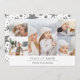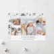 O moderno cartão com fotos de feriado minimalista apresenta cinco das suas fotos de família favoritas num esquema de colagem. Sua saudação personalizada aparece em letras negras modernas (mostradas com "Paz na Terra"), com seu nome familiar ou nomes abaixo.
