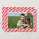 Este design de cartão com fotos de feriado contemporâneo, de red_dress, apresenta um quadro fotográfico simples contra um fundo listrado vermelho de tendência. No topo, há uma faixa marrom com as palavras "Feliz feriado". Envie seus desejos de feriado com este cartão com fotos de feriado limpo.