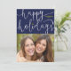 Um design com script moderno que desejava feriados felizes em uma paleta de cores brilhante amarela e marinho. Personalize esta design com a sua foto de família, saudação e nome para torná-la sua. A cor de fundo do marinho também é facilmente alterada nas configurações de "Personalizá-lo"! Fotografia de Antonio Guillem