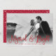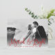 O cartão com fotos de Natal chic para recém-casados apresenta sua foto favorita de casamento horizontal ou orientada a paisagem com "casado e brilhante" sobreposto em uma inscrição festiva de vermelho de amora. Personalize com seus nomes e o ano abaixo. Cartões que se revertem para um padrão de neve e estrelas em branco ao combinar vermelho de amora.