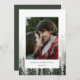 Cartão de Natal da Floresta de Pinheiros Rústicos, verde-escuro, desenhado por Shelby Allison, que pode ser personalizado com uma foto e texto na frente, assim como uma foto e uma saudação opcionais no verso.