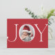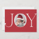 Este cartão com fotos de Natal único e recém-nascido mostra a foto do seu bebê no centro da palavra "alegria" - perfeita para compartilhar notícias do pacote do Primeiro Natal da alegria.